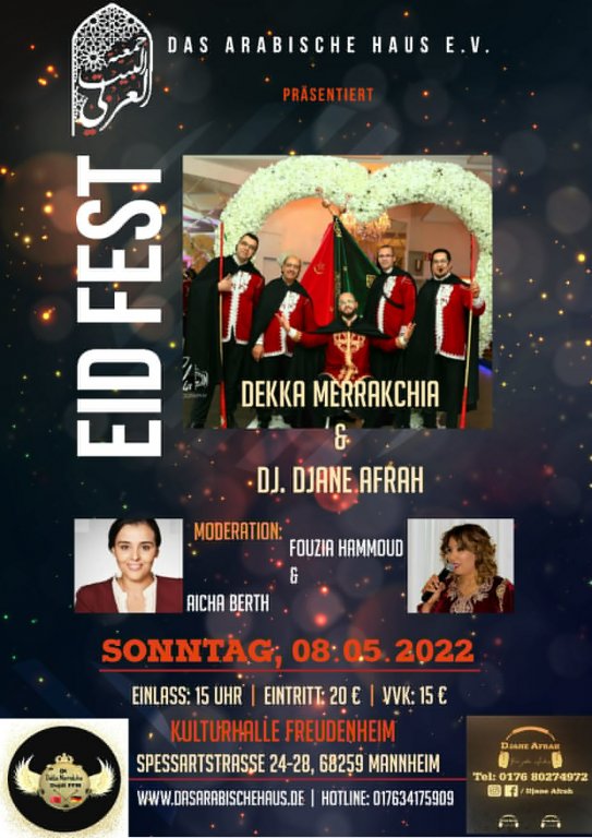 Das Arabische Haus lädt zu einer Feier zum Abschluss des Ramadan zusammen mit Dekka Merrakchia und Djane Afrah ein.